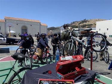 In addition to receiving a brand-new bike, students onsite receive bicycle adjustment through the BikeMobile, a local nonprofit. Students also received a helmet fitted to each student’s head size by San Mateo County’s Safe Routes to school staff and South San Francisco CERT volunteers, and many more. Students are also able to register their bikes on-site through the South San Francisco Police Department. Lastly, students each received a bike lock and air pump from the City by participating in the County’s “Bike Rodeo" administered bicycle safety classes and training.