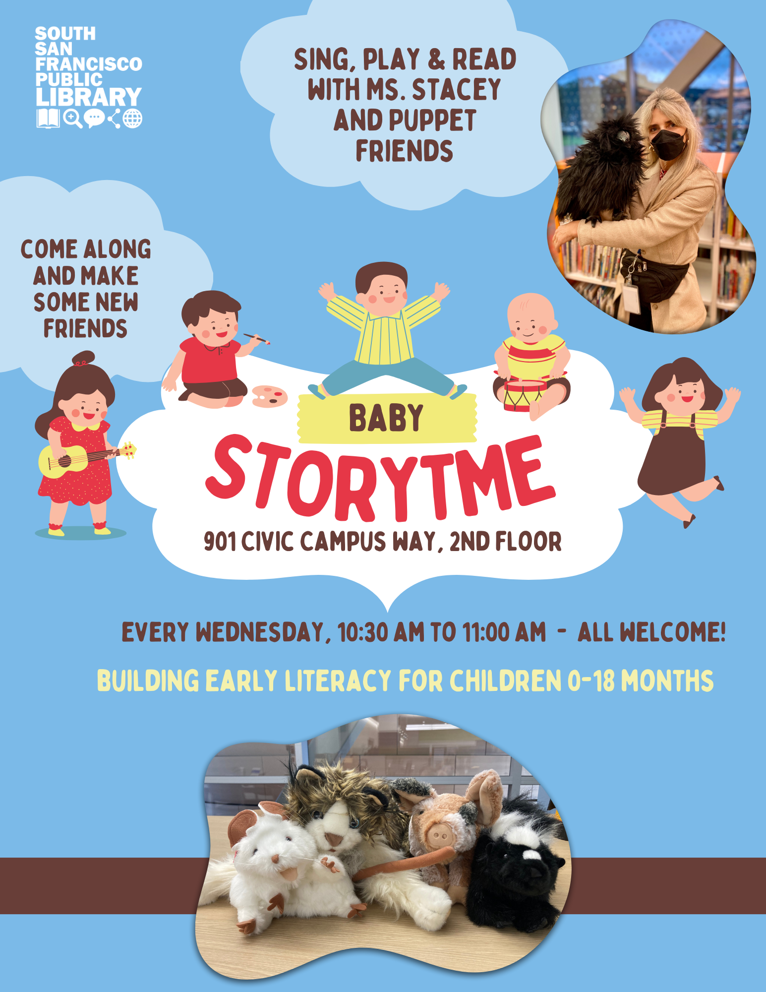 Join us to socialize your baby while engaging in early literacy activities designed for children ages 0-2. We will play using lap bounces, songs, felt stories, and bubbles!