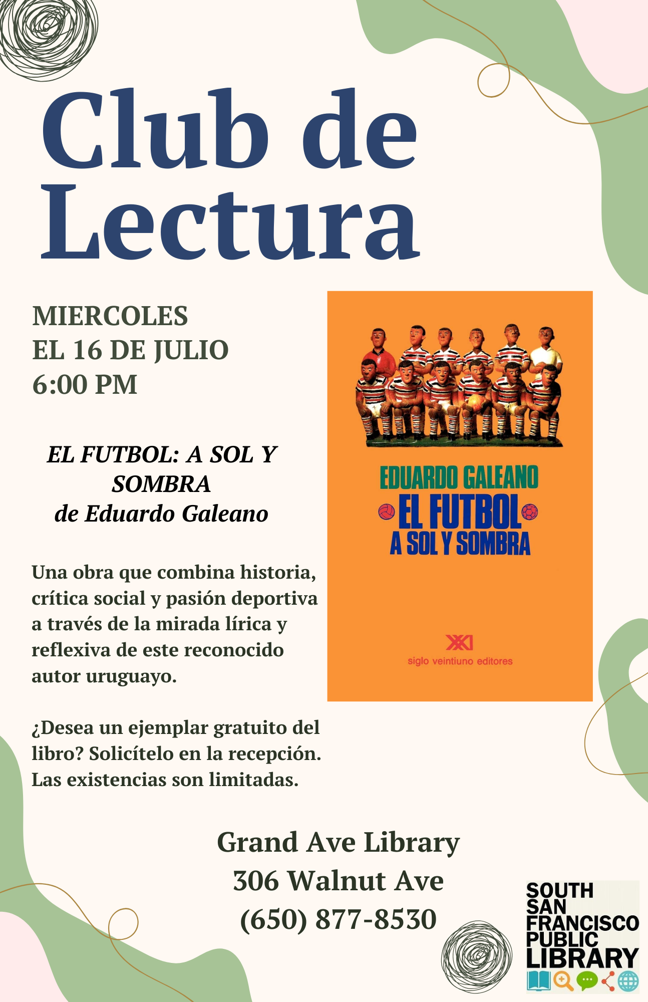 Le invitamos al club de lectura de la Biblioteca Grand Avenue para comentar El fútbol: a sol y sombra de Eduardo Galeano, una obra que combina historia, crítica social y pasión deportiva a través de la mirada lírica y reflexiva de este reconocido autor uruguayo. Con un estilo único, Galeano nos lleva desde los orígenes del fútbol hasta su comercialización moderna, celebrando sus luces y cuestionando sus sombras.