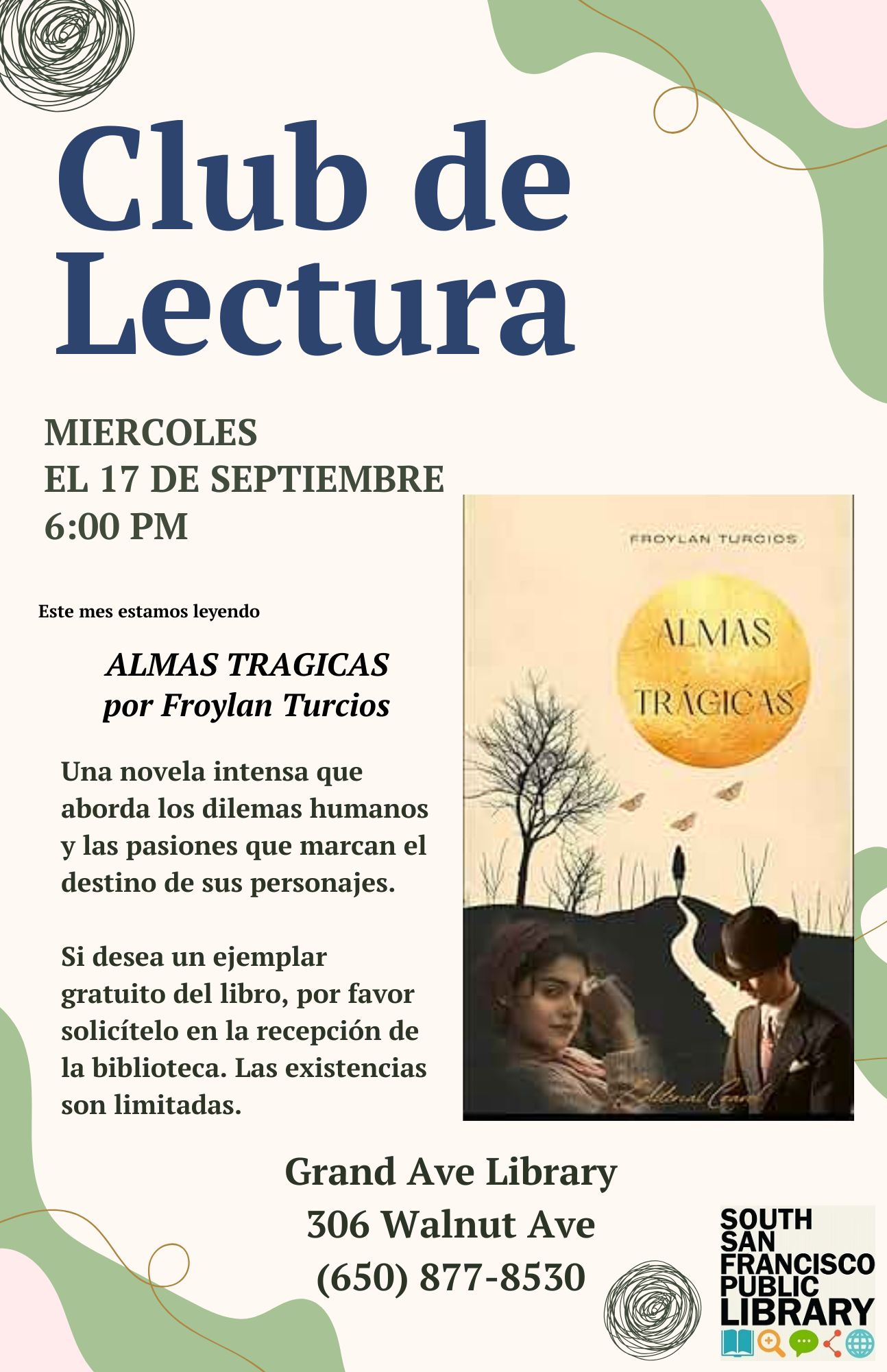 Le invitamos al club de lectura de la Biblioteca Grand Avenue para comentar Almas trágicas de Froylan Turcios, una novela intensa que aborda los dilemas humanos y las pasiones que marcan el destino de sus personajes.