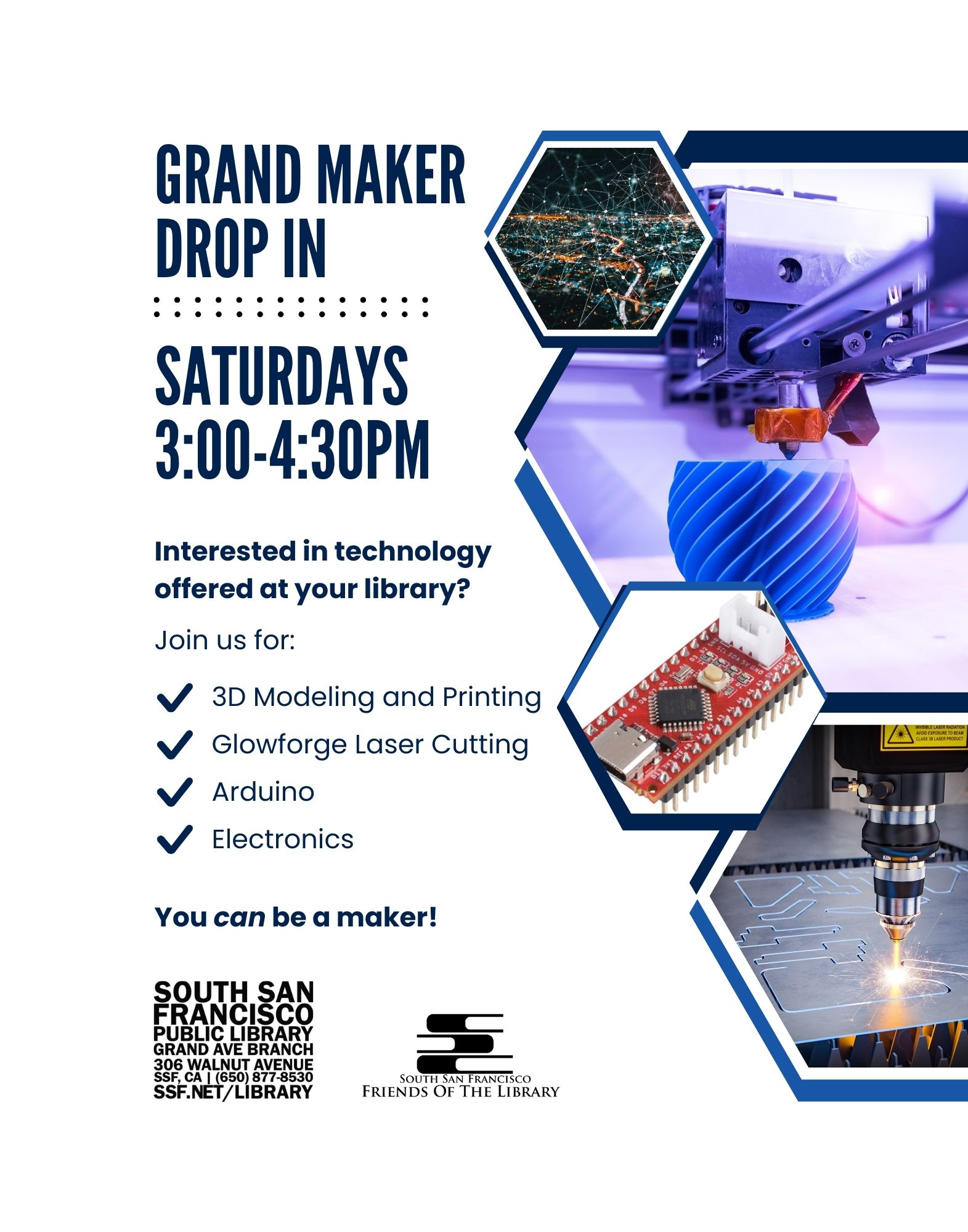 Are you interested in trying 3D modeling, 3d printing, laser cutting, Arduino or electronics? Get started now! Your questions answered. All materials provided. Discover the possibilities – where your imagination becomes reality!