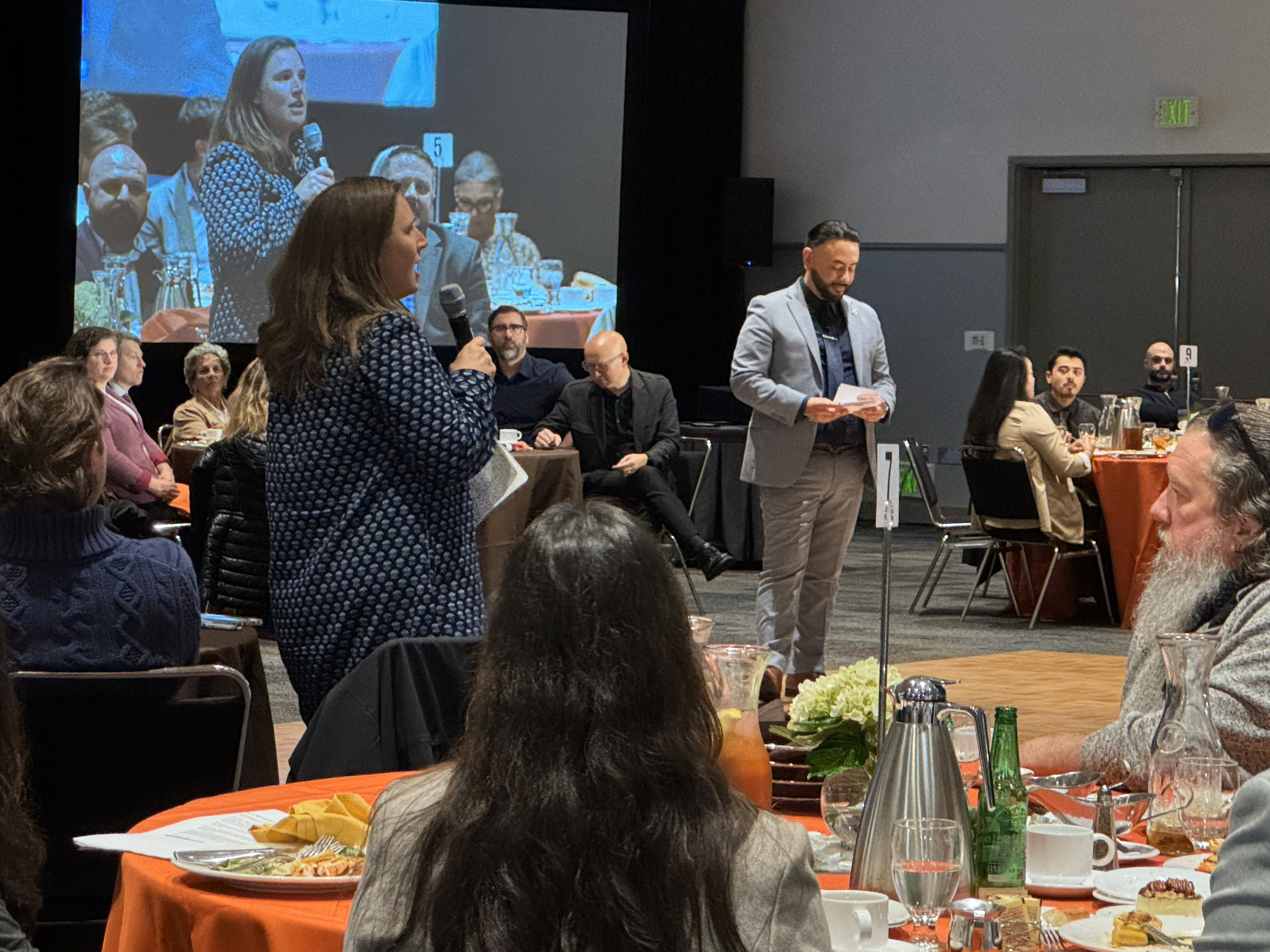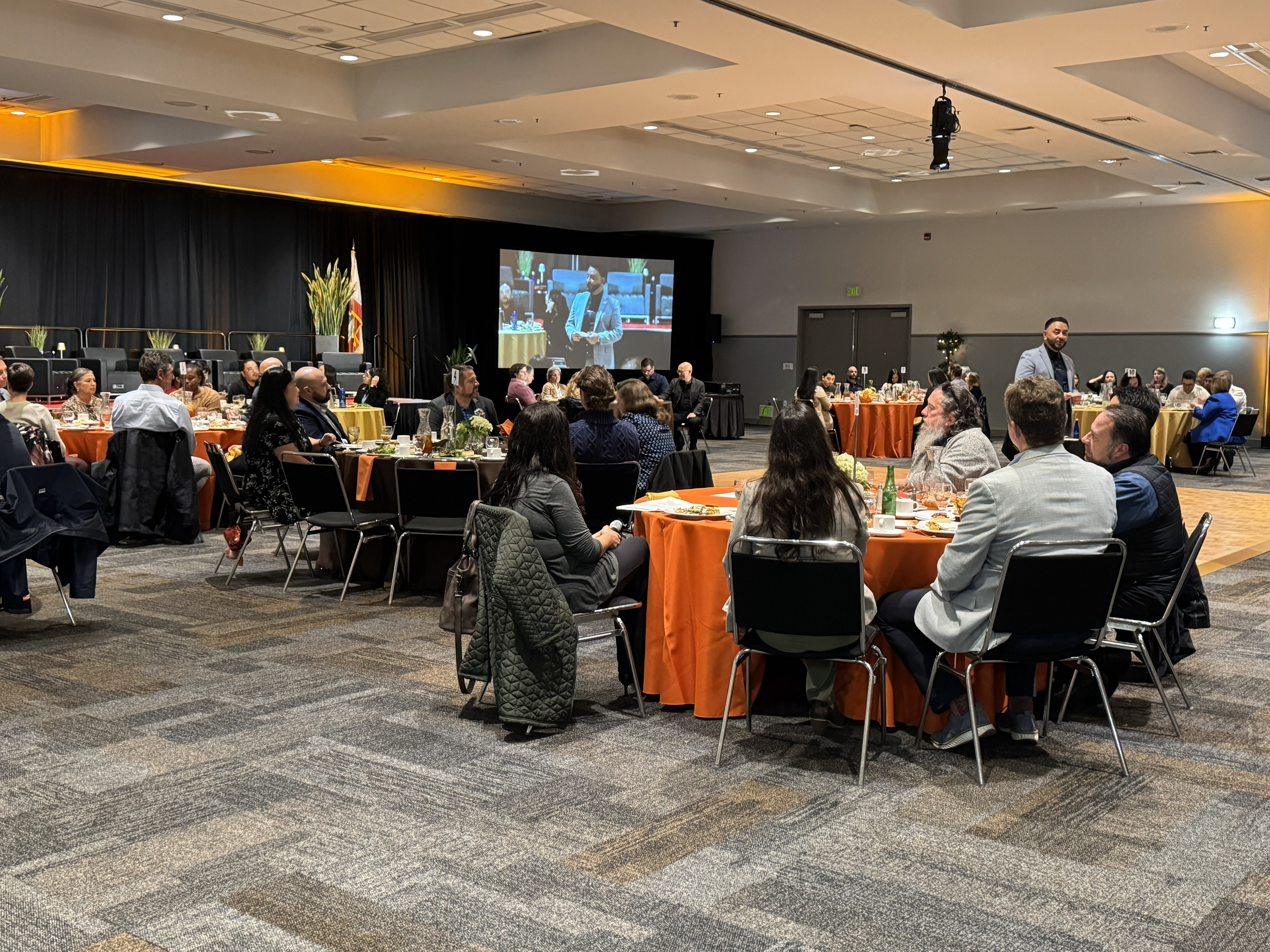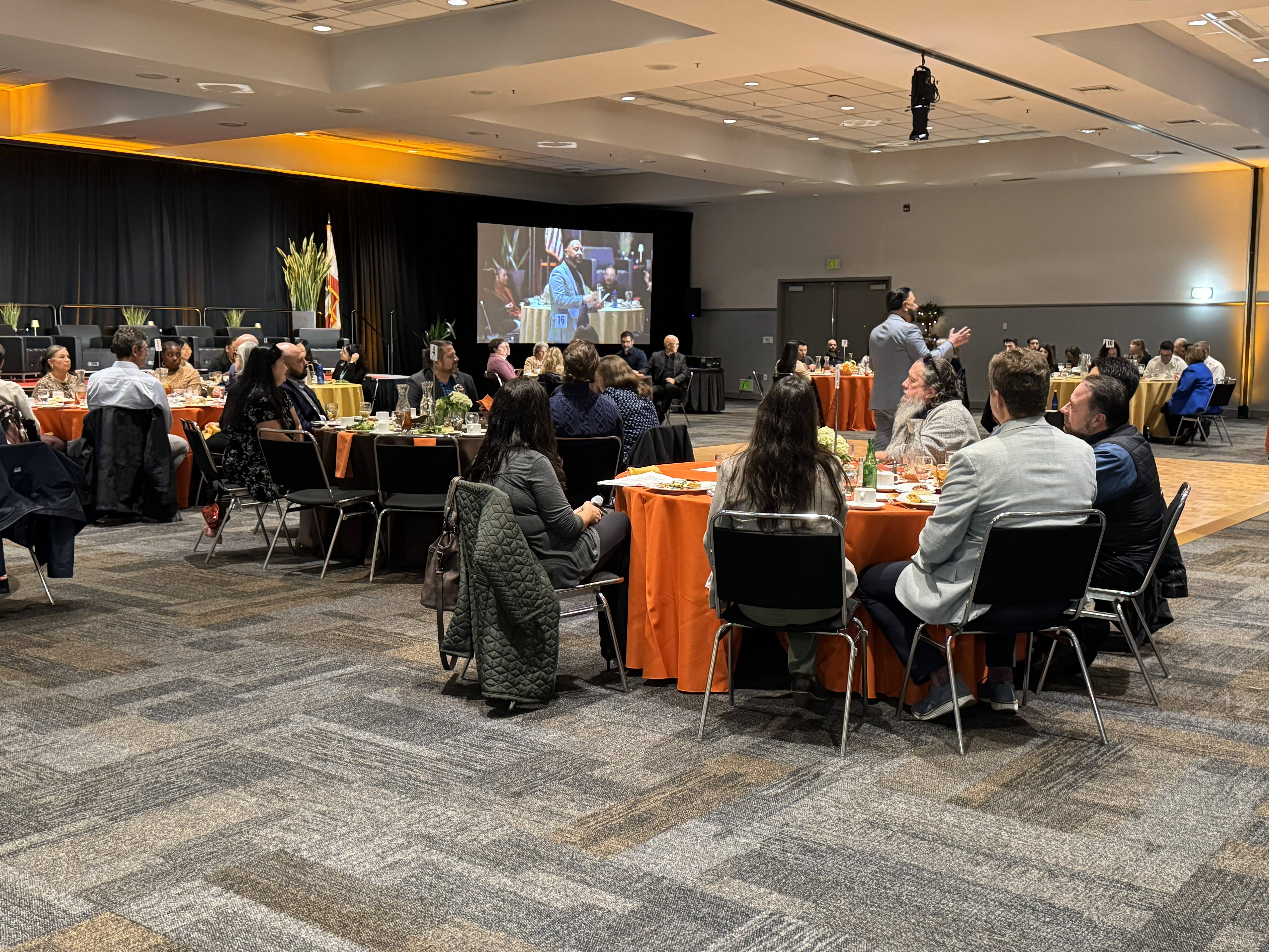 Mayor Eddie delivering the State of the City address from the center of the room